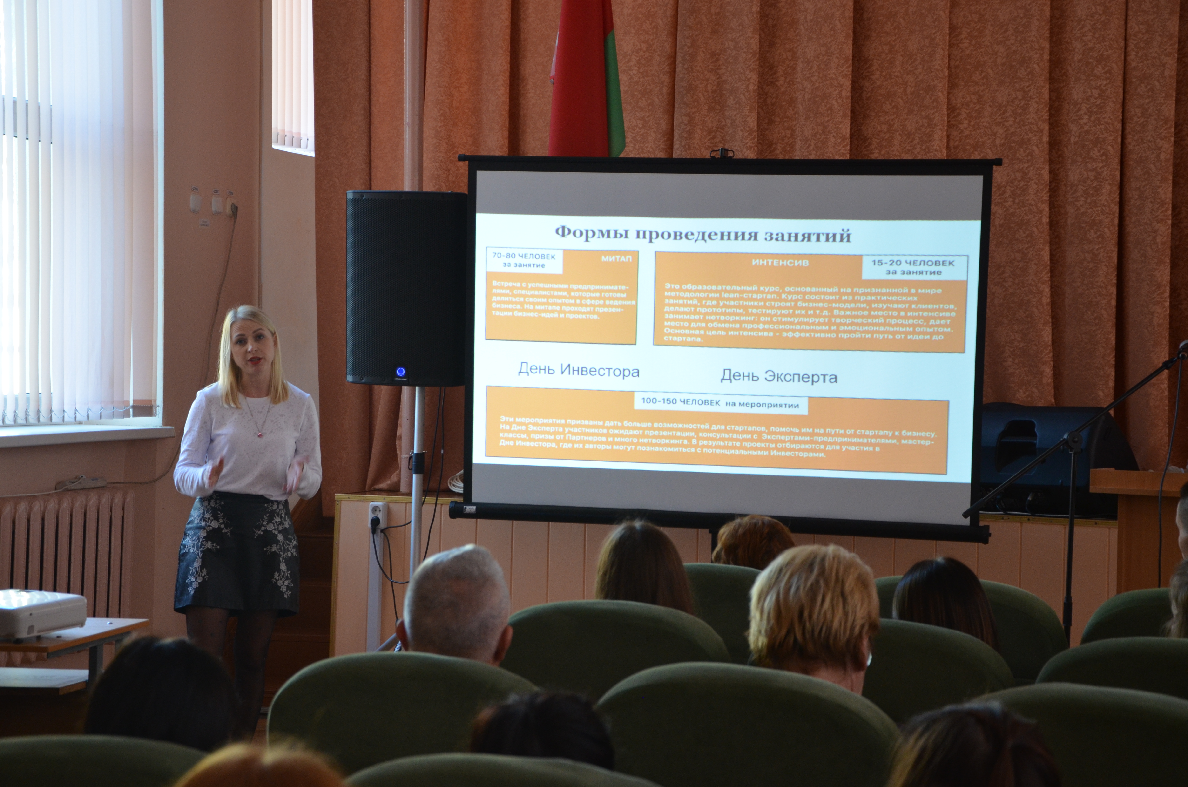 15.10.2019 Лидский колледж служил платформой для проведения заседания Стартап - школы и обучающего мероприятия на тему «Ваш бизнес-старт». В данном мероприятии участвовали учащиеся второго курса гуманитарного отделения, преподаватели колледжа, предприниматели города. Гостями заседания были: начальник информационно- консультационного отдела Лойша Н.А; организатор Стартап - школы Камендант Т.М.; предприниматель, основатель и учредитель маркетингового агенства «Эйво» С.А. Величко. Они рассказали учащимся колледжа об особенностях работы Стартап - школы, поделились своими бизнес – идеями.